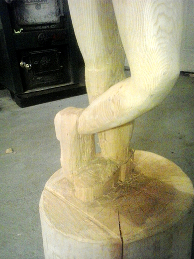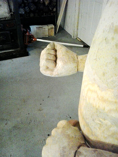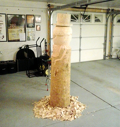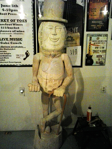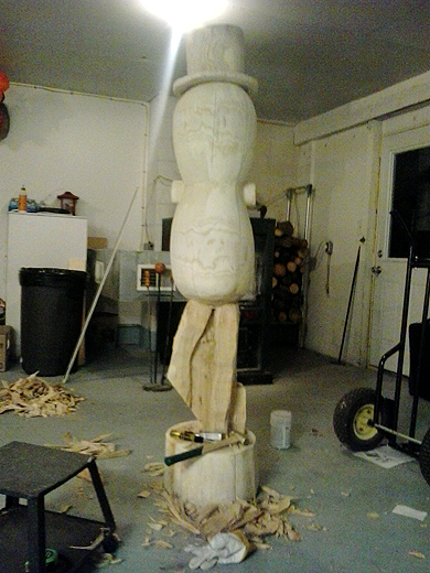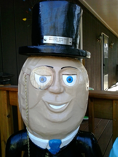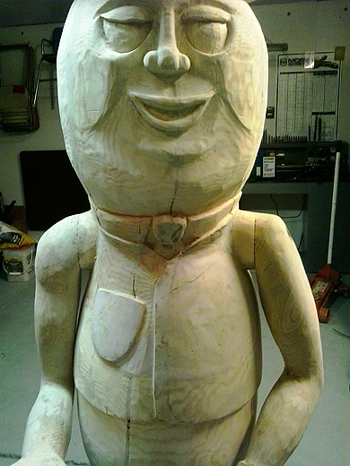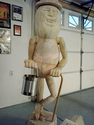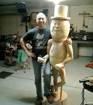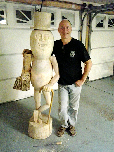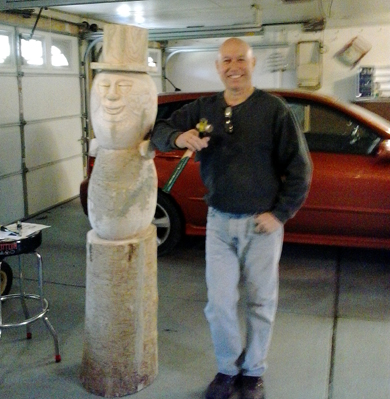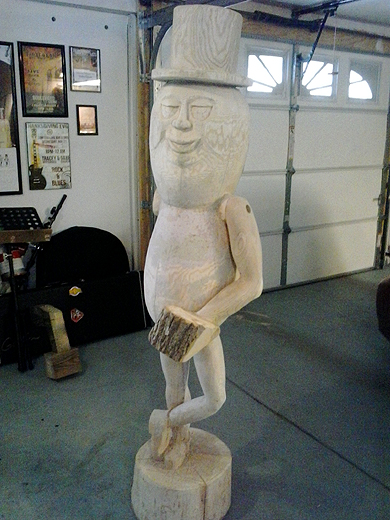of Harrison, Michigan and photos of his wood sculpture of Mr.